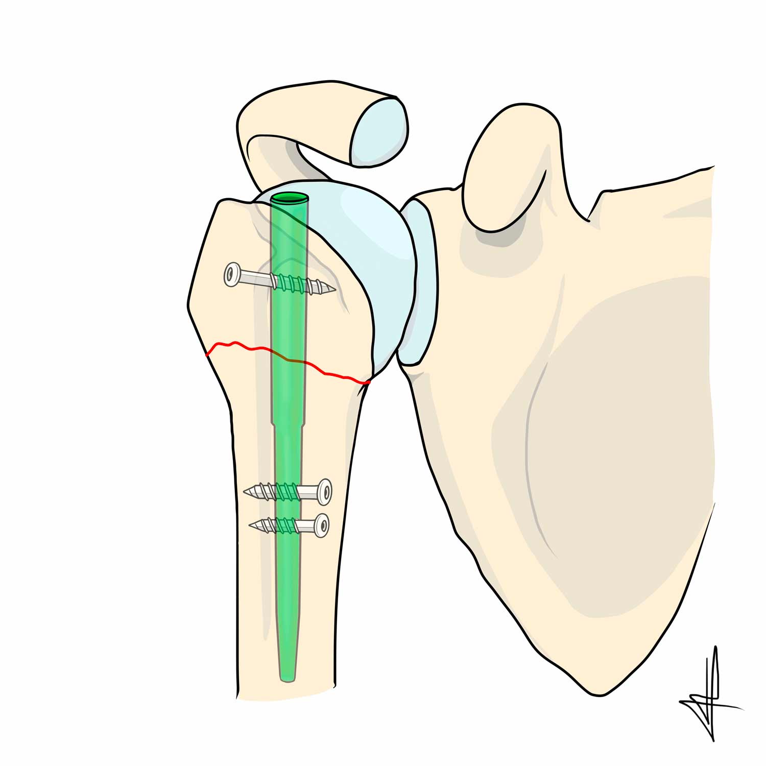- Ostéosynthèse (clou pour fixer les fragments osseux